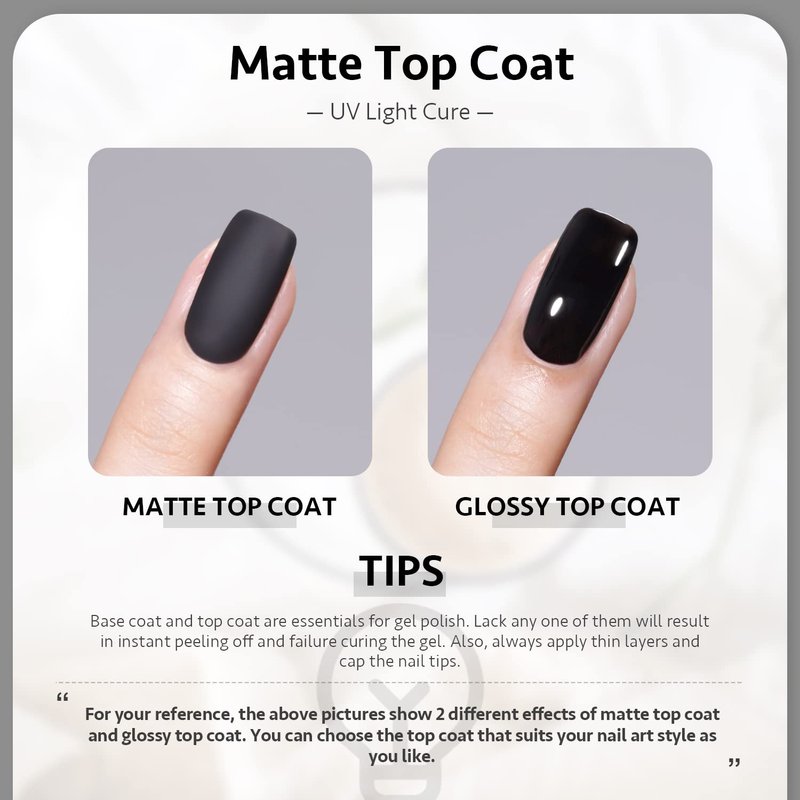 - PACKAGE INCLUDES: 1 GAOY matte gel top coat of 0.54 fl.oz (16ml). Gel manicure essentials to enjoy the nail art from the comfort of your own home!