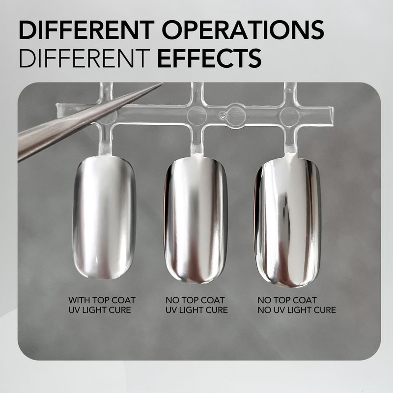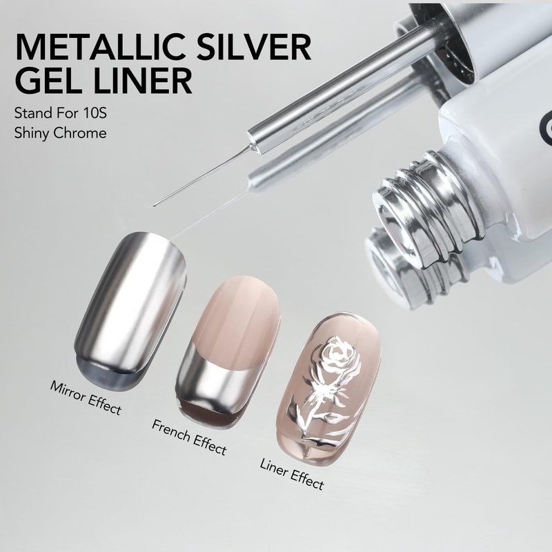 - Chrome Mirror Effect: Achieve a stunning mirror-like finish on your nails by using our metallic silver gel liner.