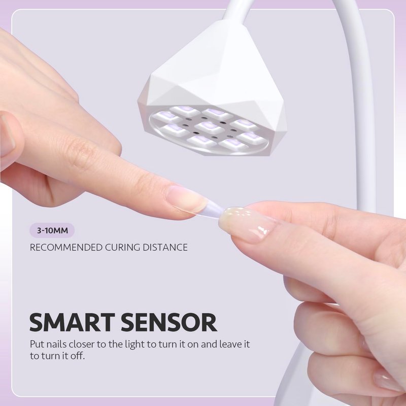 - SMART SENSOR: Put nails closer to the light to turn it on and leave it to turn it off.