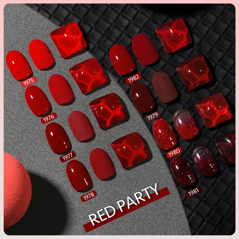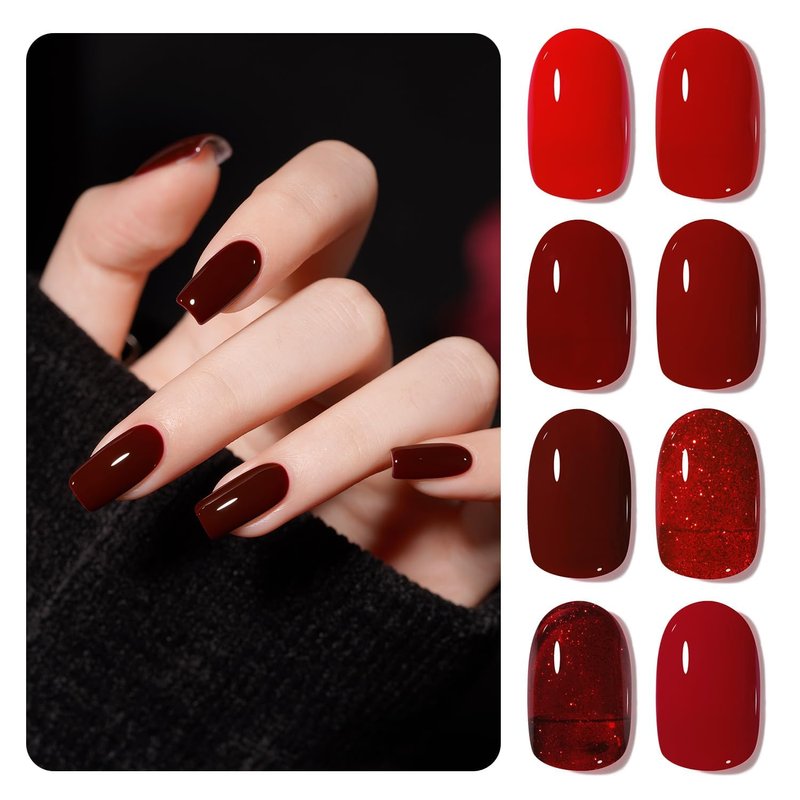 GAOY Red Gel Nail Polish Set, 8 Colors Burgundy Scarlet Carmine Dark Glitter Red Soak Off Gel Polish Kit for Salon and Nail Art DIY at Home