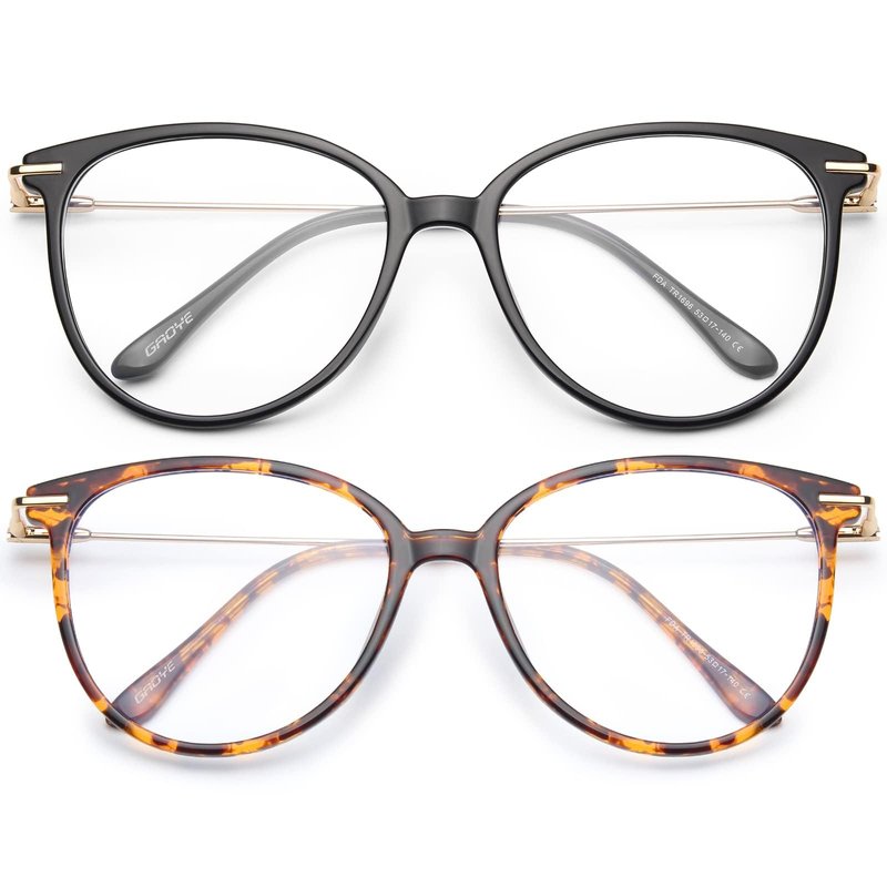 Gaoye Blue Light Blocking Glasses Women/Men, Fashion Round Cateye Frame UV Ray Filter Computer Gaming Glasses - GY1696 (Black+Tea Leopard)