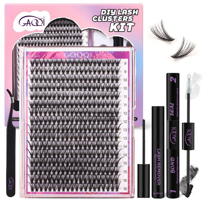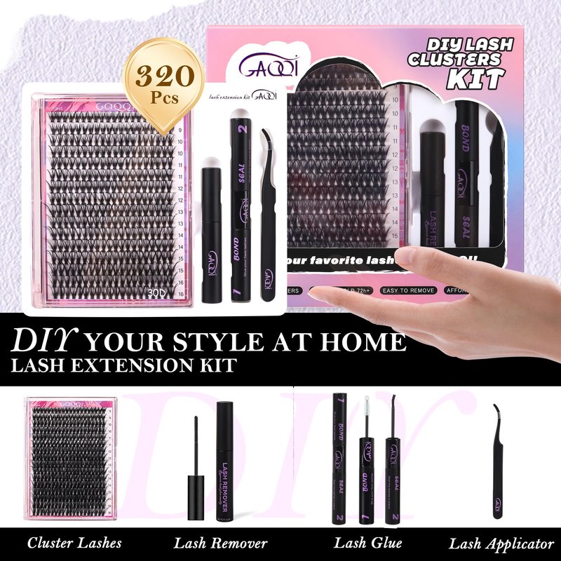 - 【Perfect Lash Extension Kit】GAQQI DIY lash extension kit could offer you ONE TRAY WITH 320PCS 30D 9-16MM MIXED LASH CLUSTERS, ONE LASH GLUE AND ONE LASH TWEEZER, so you could make lash extension at home per your styles! It is suitable for beginners who want have efficient lash clusters kit