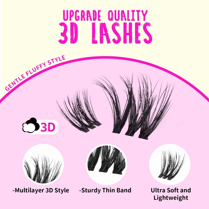 - 【MULTI-LAYER 3D FLUFFY EFFECT】Our lash clusters feature a gentle and natural 3D effect, ensuring a vivid and fluffy look without appearing messy. They enhance your eyes, making them look stunning from both the side and front views.