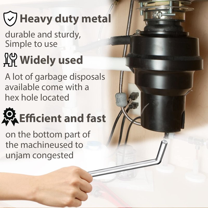 - Simple to use garbage disposal allen wrench for garbage disposal, just insert the garbage disposal wrench into the center hole in the bottom of the disposal and turn back and forth several times to free the disposal, then any blocks or clogs in your appliance are dislodged