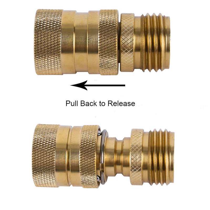 - ★【Durable and Solid Water Hose Quick Connect】-durability & leak-free. No cheap and flimsy aluminum or plastic material.Standard 3/4 inch GHT water hose quick connector fits all types of garden hoses. working perfectly with any 3/4" GHT(garden hose thread) spigot, hose end and nozzle.