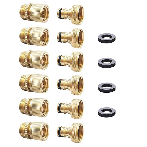 - ★【Standard 3/4 Inch GHT Garden Hose Quick Connect】- You will get 6 brass male coupling +6 brass female nipples+4 free washers.You can enjoy it work perfectly with any standard garden hose,faucets,hose bibs and watering devices.