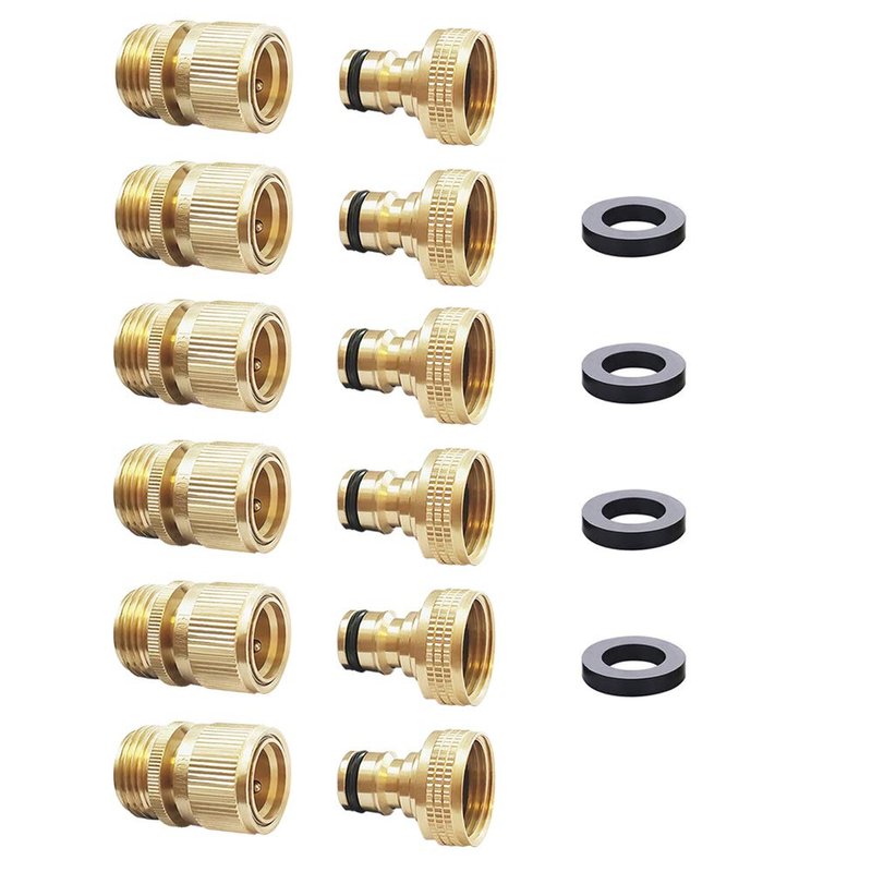 Garden Hose Quick Connector Water Hose Qucik Connect Garden Hose Connectors Brass Hose connectors Water Quick Connect Fittings 3/4" Inch GHT Solid Brass 6 Sets(6pcs Male Coupling 6pcs Female Nipple)