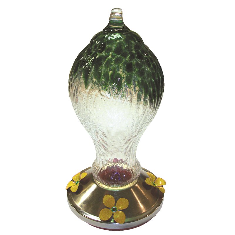 - Decorative hand blown glass hummingbird feeder