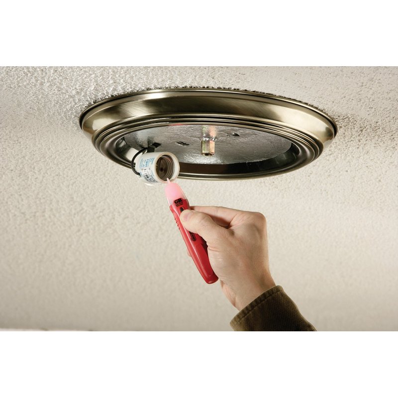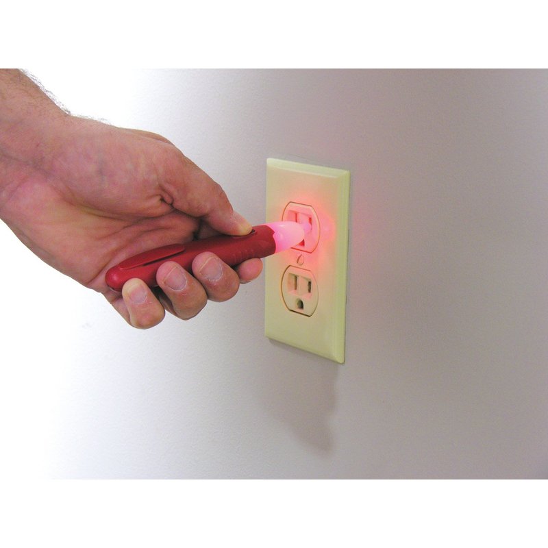 - Non-Contact Voltage Tester features visual and audible indicator, pocket clip, on-off button