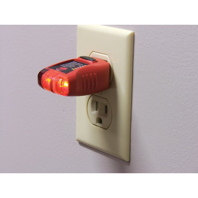 - GFCI Outlet Tester features indicating lamps that indicate 5 common wiring errors