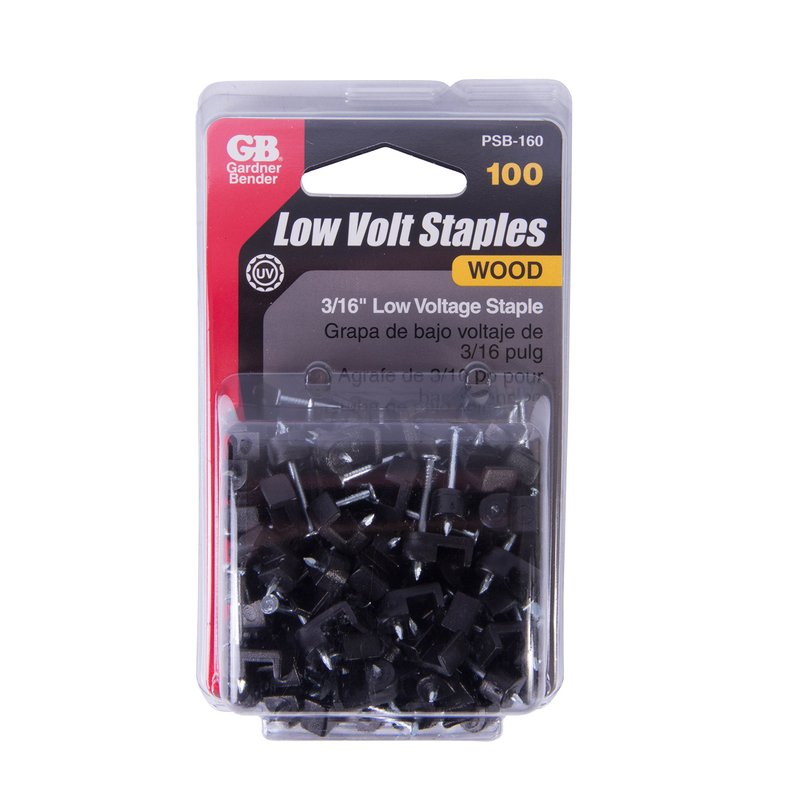 Gardner Bender PSB-160 Low-Voltage Plastic Staples, 3/16 Inch., Secures Bell / Speaker Wire, For Wood Applications, Polyethylene - UV Resistant, Splinter Free, 100 Pk., Black