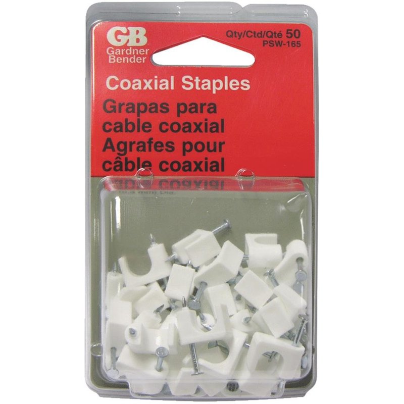 Gardner Bender PSW-165 Low-Voltage Electrical Cable Staples, ¼ inch, Secures CAT6, RG-59 and RG-6, 50 pk, White