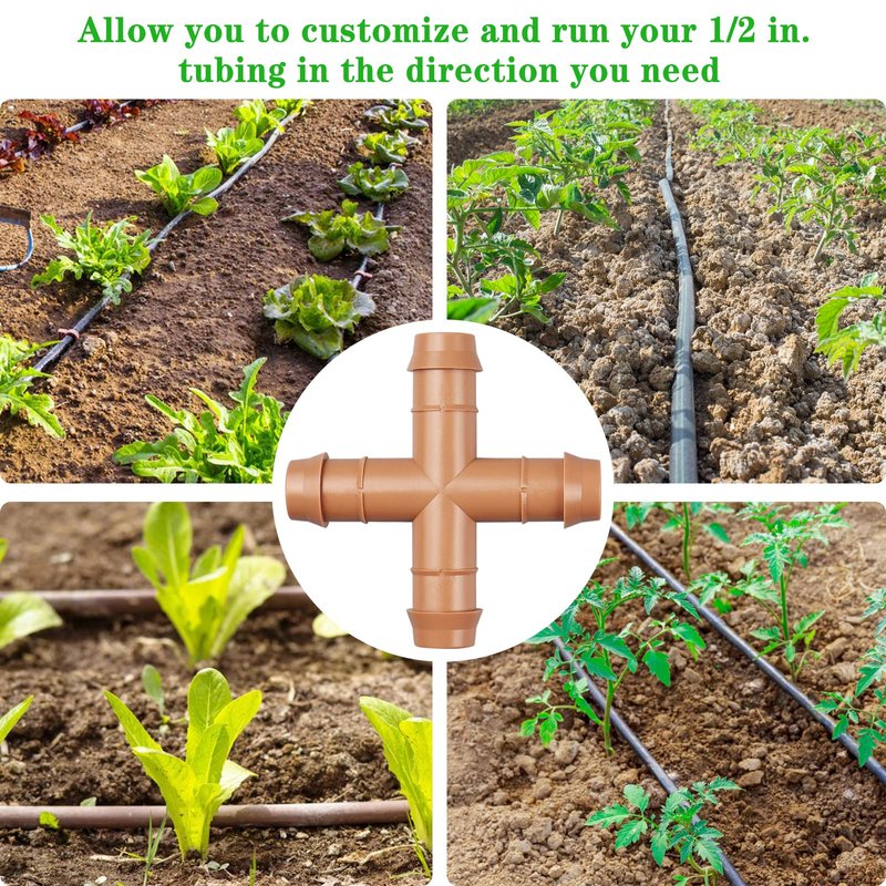 - 【10 Pieces Cross Tee Fittings】:The package includes 10 barbed cross in total. Gardrip barbed cross tee is designed to connect four lengths of 1/2" drip tubing in an "+" shape. It allows you to create a custom layout of drip system as you want.