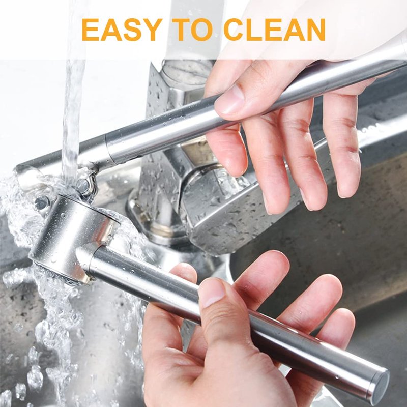 - 🧄 EASY TO CLEAN:After using the stainless steel garlic press & mincer & crusher, take out the removable basket to wash and rinse the handle. It is easy to get it cleaned in seconds. With the help of the small brush included in the garlic press set, the cleaning job will be easier and quicker. One more thing, it is also dishwasher safe!