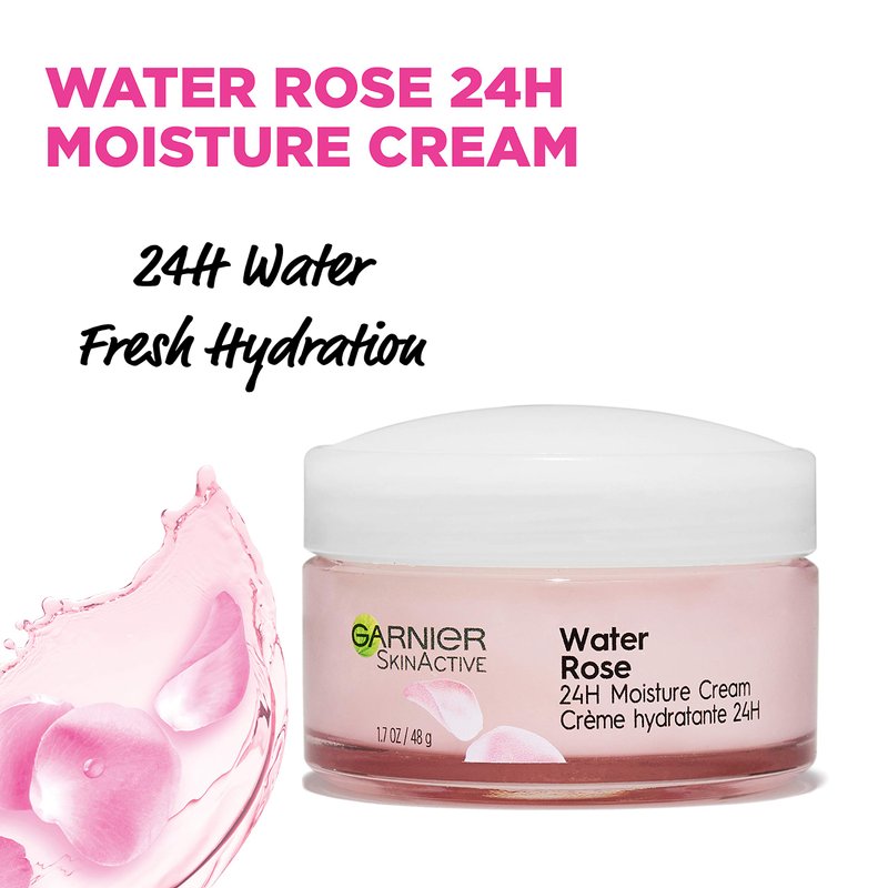 Garnier 24H Moisture Cream with Rose Water and Hyaluronic Acid, Face Moisturizer for Normal to Dry Skin, 1.7 Fl Oz (48g), 1 Count (Packaging May Vary)