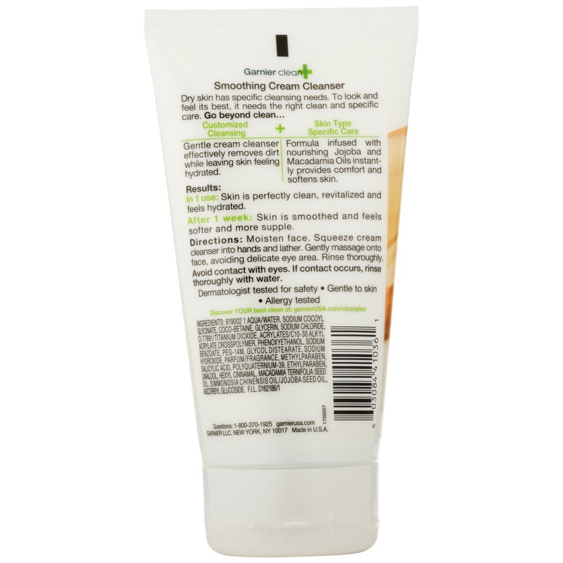 Garnier Clean+ Smoothing Cream Cleanser For Dry Skin, 5 Fluid ounces
