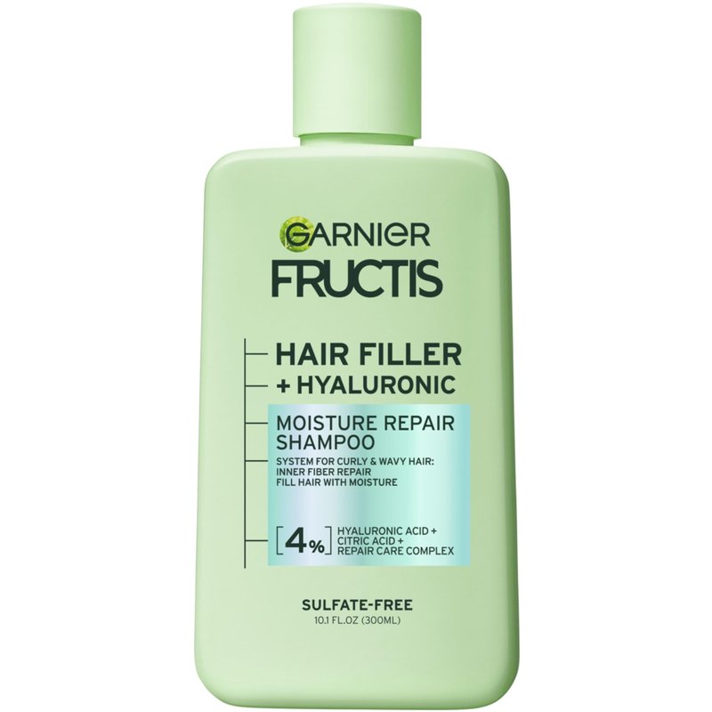 Garnier Fructis Hair Filler Moisture Repair Shampoo, Sulfate Free Shampoo for Curly, Wavy Hair with Hyaluronic Acid, 10.1 Fl Oz, 1 Count