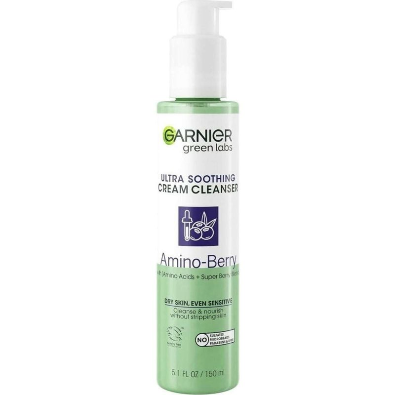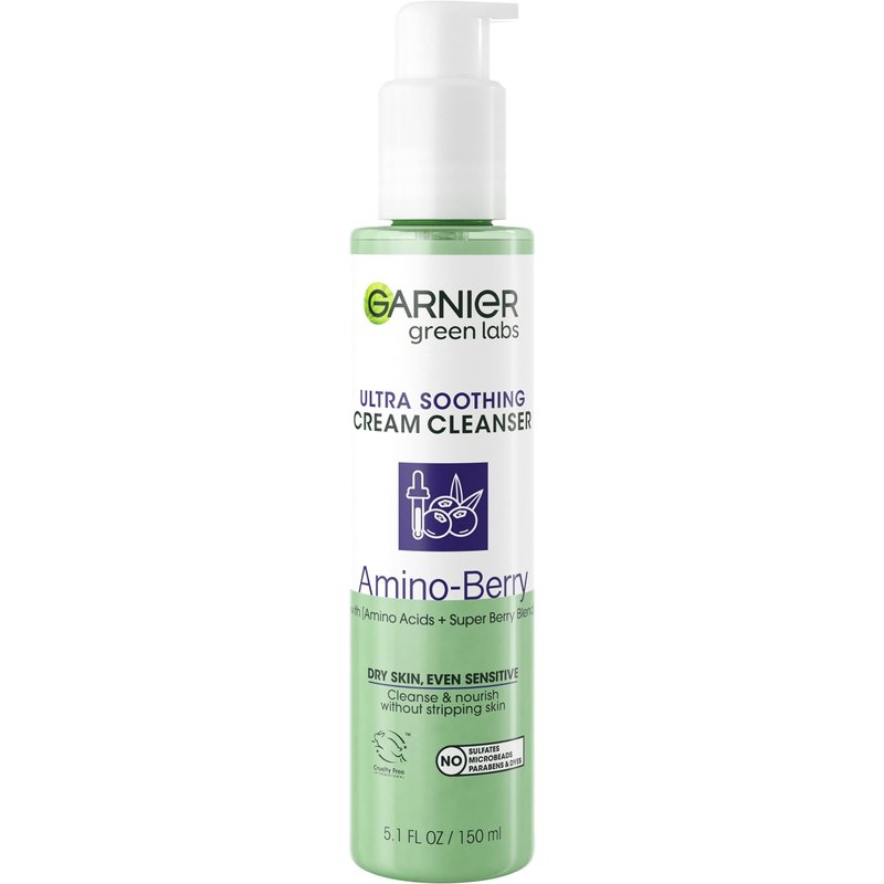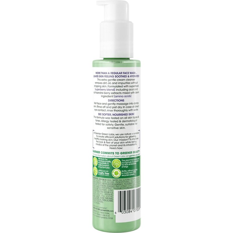 Garnier Green Labs Amino-Berry Soft Gentle Facial Cream Cleanser Hydrates and Soothes Skin, 5.07 fl oz