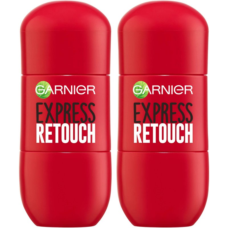 - Garnier Express Retouch allows you to instantly touch up your roots, anytime and anywhere- with up to 100 percent coverage of gray hairs