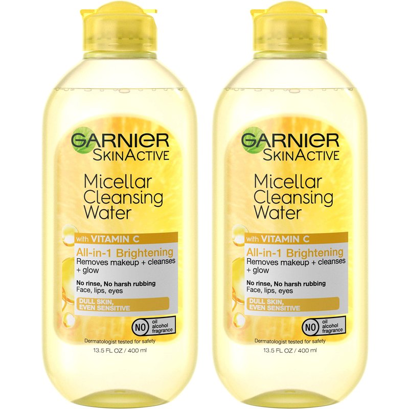 Garnier Micellar Water with Vitamin C, Facial Cleanser & Makeup Remover, Brightening & Hydrating, For All Skin Types, Vegan, Cruelty Free, 13.5 Fl Oz (400mL), 2 Count