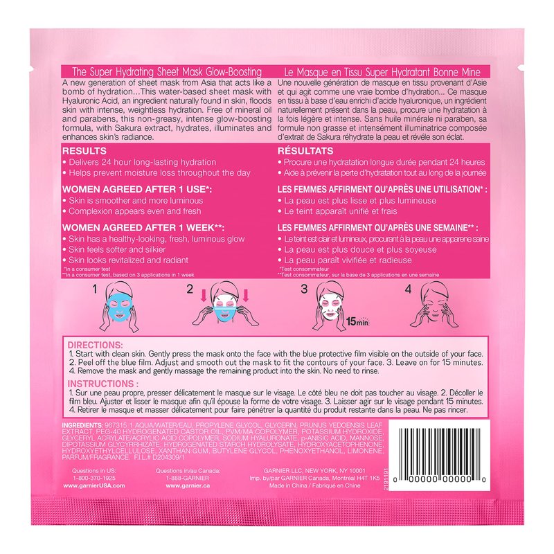 Garnier Moisture Bomb Glow-Boosting Super Hydrating Mask with Sakura Extract, 32 mL