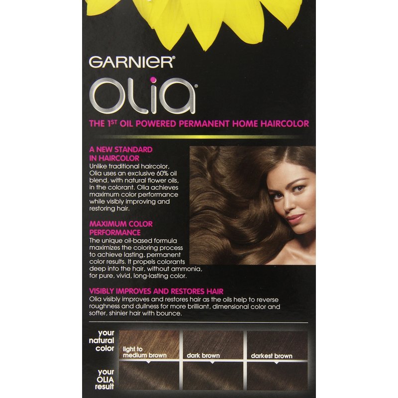 - Oil Powered Permanent Hair Dye: Olia is an ammonia free hair color kit for brilliant color and visibly healthier looking hair; Using an exclusive 60 percent oil blend with natural flower oils, Olia has a unique no drip cream formula