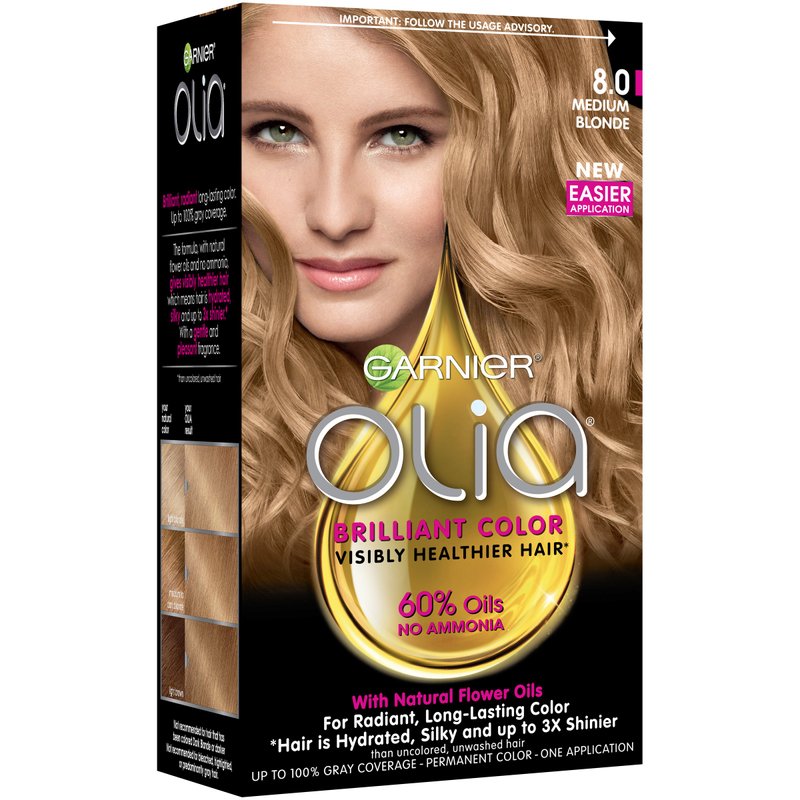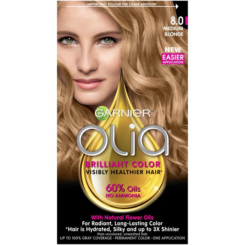 Garnier Olia Ammonia-Free Brilliant Color Oil-Rich Permanent Hair Color, 8.0 Medium Blonde (1 Kit) Blonde Hair Dye (Packaging May Vary)