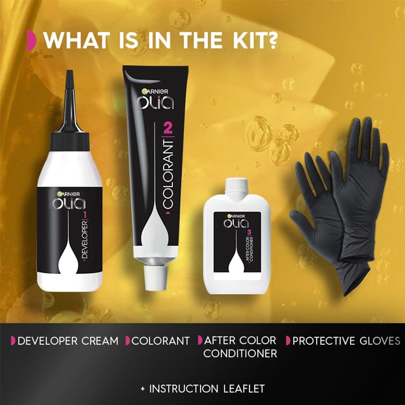 - Oil Powered Permanent Hair Dye: Garnier Olia hair color is powered by 60% oils with sunflower and camellia oil to propel color deep inside the hair for long lasting hair color. Non-drip cream formula delivers brilliant color without damaging your hair