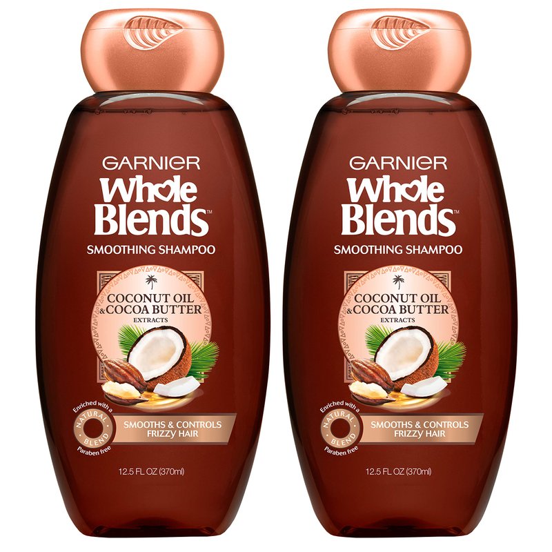 - Garner Whole Blends Smoothing Shampoo with sustainably-sourced South Pacific Coconut Oil and African Cocoa Butter extracts tames and controls frizzy hair