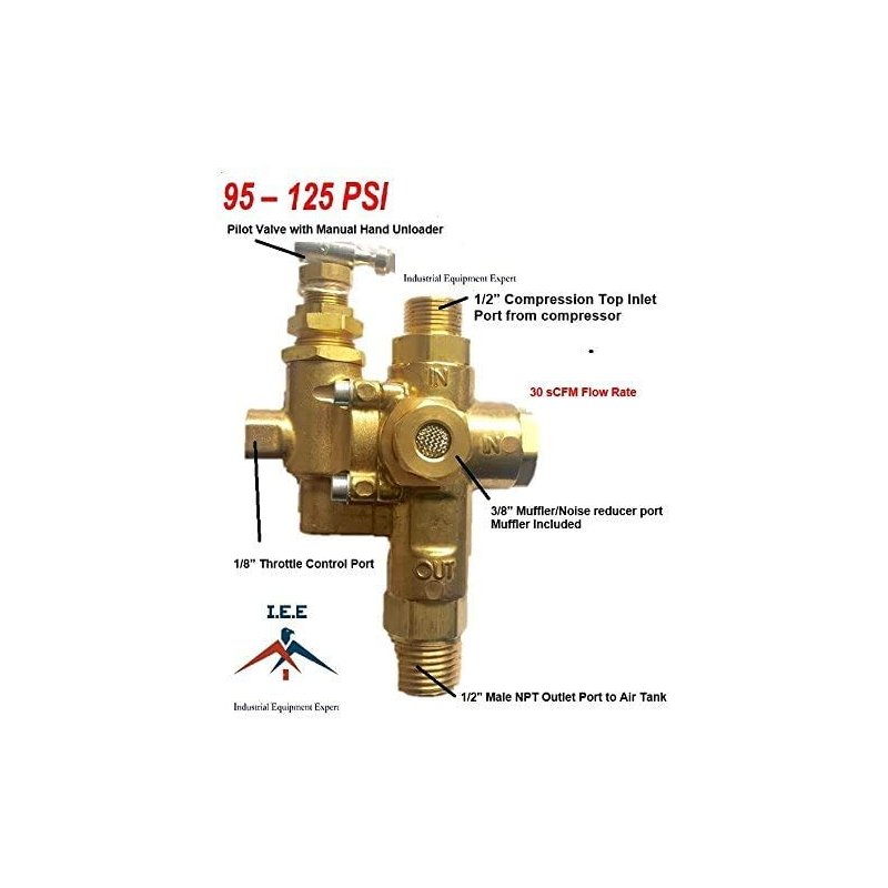 - 1/2" Compression Top Inlet ( For 1/2" OD Copper Tubing, Nut & Ferrule not included) X 1/2" Female NPT Outlet, Combination Unloader Pilot Check valve