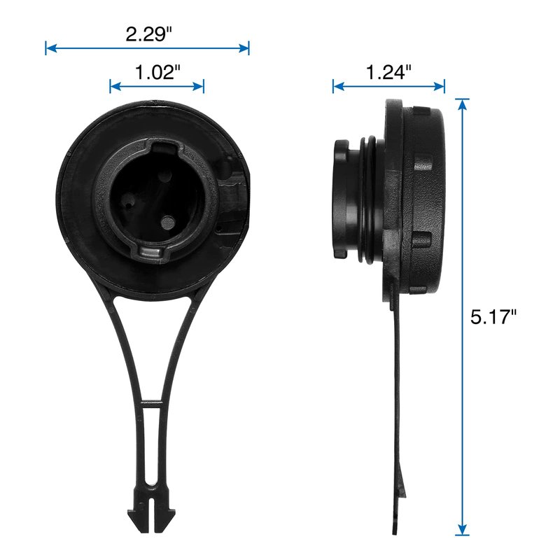 - 5. Package includes: 1 fuel cap (length 5 1/5", outer diameter 2 1/4", inner diameter 1", thickness 1 1/4") with tether.