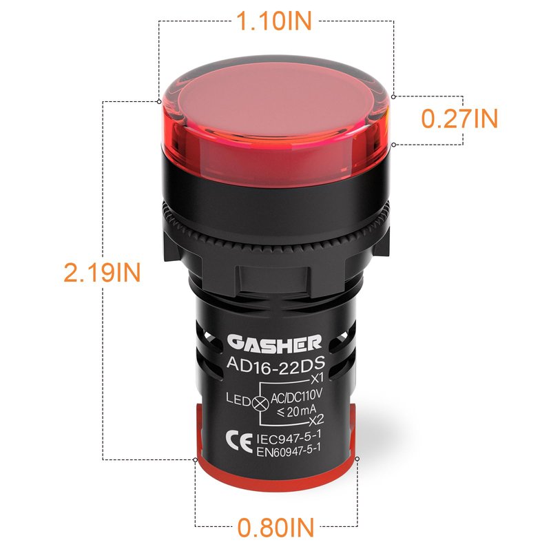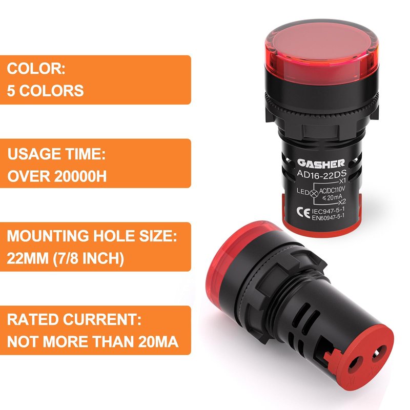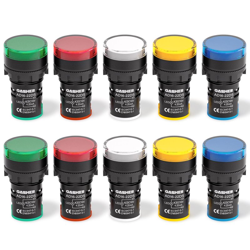 GASHER 12V/24V/110V 20mA Energy Saving LED Indicator Light Mounting Hole Size 22mm (7/8 Inch) Green Yellow Red Blue White (110V) 10 Pcs