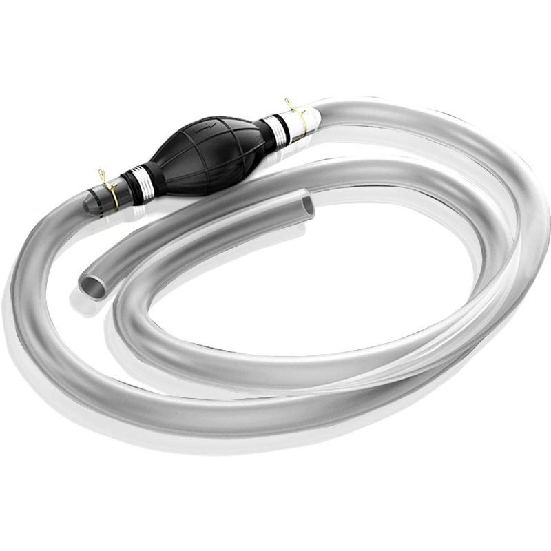- QUICK FUEL TRANSFER - The siphon pumps the oil from one container to another easily, and is meant to go down into a fuel tank without an anti-siphon filter. The gas syphon is great for stealing a bit of gas for your lawn mower when you need it, you just push the tube down, start pumping the bulb and fuel starts to flow, the same as with the old way of sucking on the tube but this is much safer.