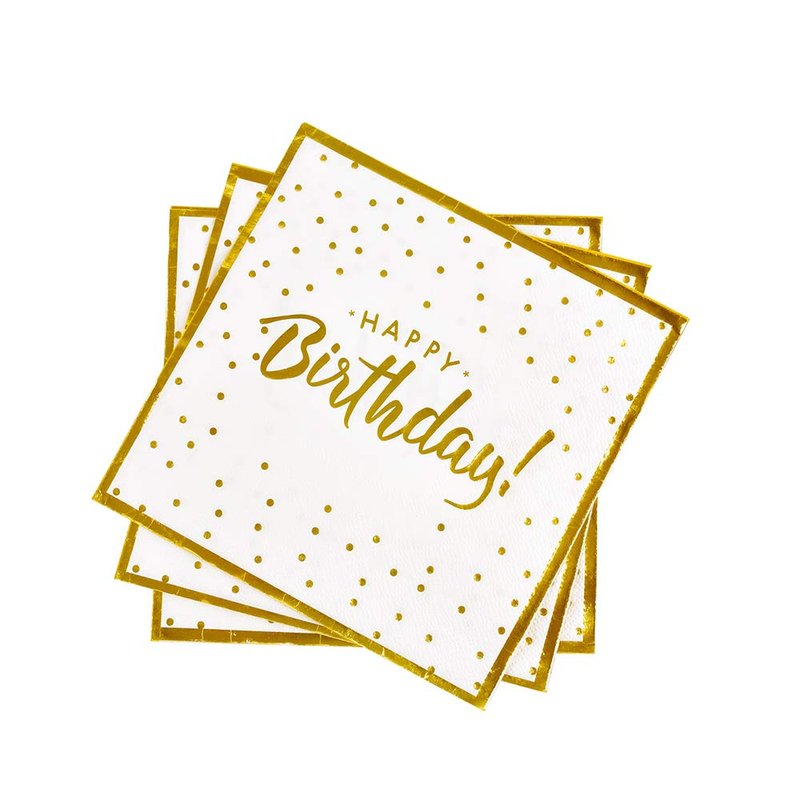 Gatherfun Birthday Party Supplies Napkins Disposable Paper Napkins with Gold Stamping for Adults and Kids Birthday Party(6.5X6.5 in, 3-Ply, 50-Pack)