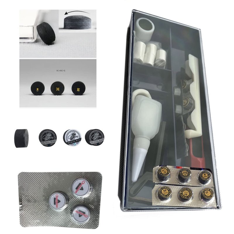 The premium cue tip repair kit is a must have for any serious billiards player. This set comes with: