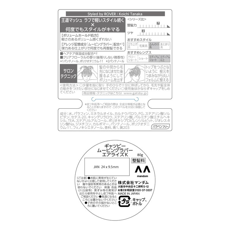 GATSBY MOVING RUBBER AIR RISE Hair Wax, 80g/2.8oz