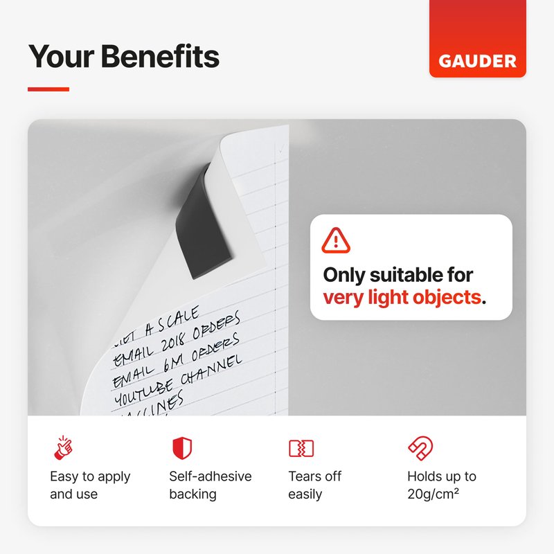 - GAUDER brand quality: GAUDER sticky magnetic strips are made using high quality workmanship and reliably adhere to metal surfaces — try it out for yourself!