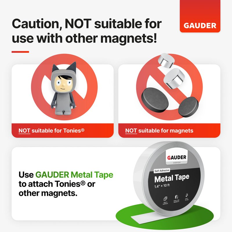 - USE NOTE – Our magnetic strip dispenser is NOT SUITABLE for attaching Tonies, magnets and magnetic tapes - for attaching magnetic objects, we recommend our GAUDER Metal Tape.
