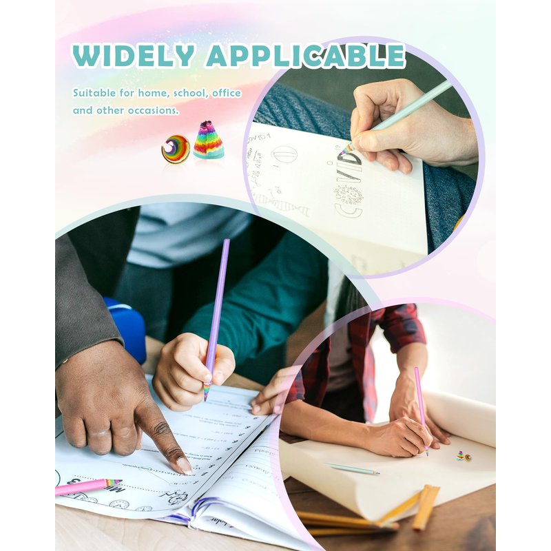 - 【Rainbow Paper Pencil】: The inner body of sharpened pencils is made of rainbow -like recycled papers. Premium #2 HB grade pencil lead for smooth writing and drawing.