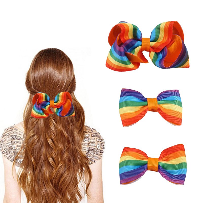 Gay Pride Day Rainbow Hair Bow with Clip Grosgrain Ribbons Hair Clips Headbands Headdress Candy color Barrettes for Girls Women 3 Pcs