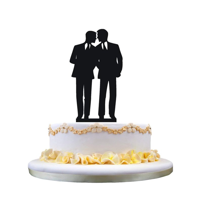 Gay Wedding Cake Topper, Black Color Acrylic Silhouette Couple Groom and Groom Wedding Party Decorations