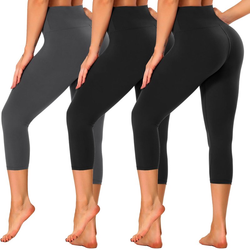 GAYHAY 3 Pack High Waisted Capri Leggings for Women - Soft Stretch Tummy Control - Exercise Pants for Running Cycling Workout