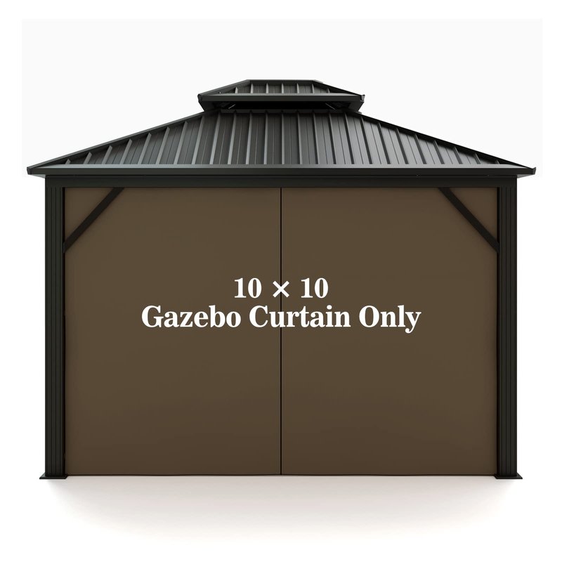 Gazebo Universal Replacement Privacy Curtain – Hugline 10' x 10' Gazebo Side Wall Outdoor Privacy Panel with Zipper (Brown)