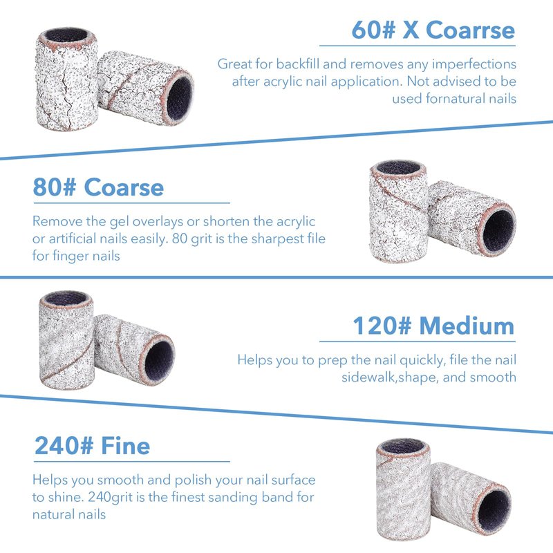 - Beginner Friendly: Select a sanding band in place over nail drill bit and gently apply pressure to the surface of the bed. It is Works perfectly for natural nails, gel nails, acrylic nails, manicure and pedicure