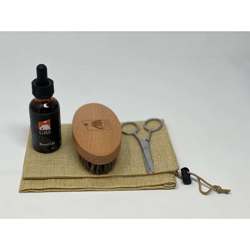 G.B.S Beard Kit - Beard Oil, Travel Beard Brush, Mustache Trimming Scissors - Beard Styling Care Starter Gift Set for Men