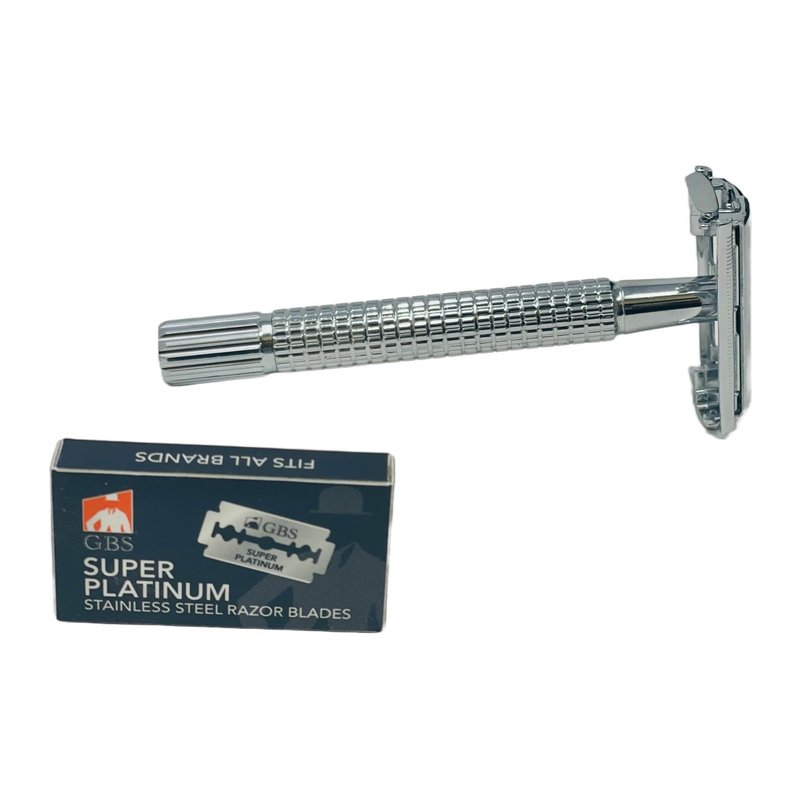 G.B.S Men Deluxe Travelling Kit - Double Edge Safety Razor, Chrome Shaving Brush, Shaving Soap Bowl, Natural Shaving Soap with G.B.S Alum Block + Leather Toiletry Bag, Wet Shaving Kit