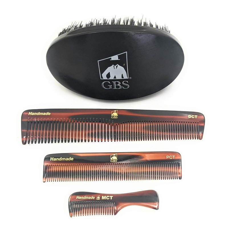 G.B.S Men’s Handmade Comb Set, Pure Synthetic Hair Brush, Dressing Comb, Pocket Comb, Mustache Comb and Military Style Hair Brush