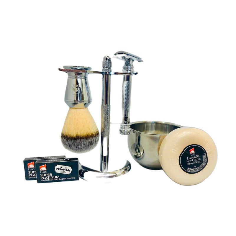 - G.B.S Men's Shaving Set- Double Edge Safety Razor MK 38, Shaving Brush, Dual Stand, Chrome Shaving Bowl, Natural Shave Soap, Double Edge Safety Razor Blades