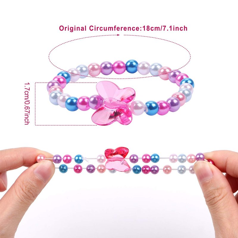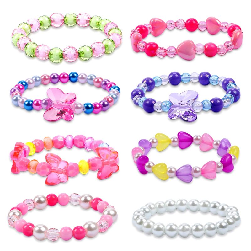 - CUTE BRACELET- This pack includes 8 colorful beaded bracelets, each bracelet with different cute colors and designs. Your little girl will feel oh so magical with these stretch bracelets on her wrist