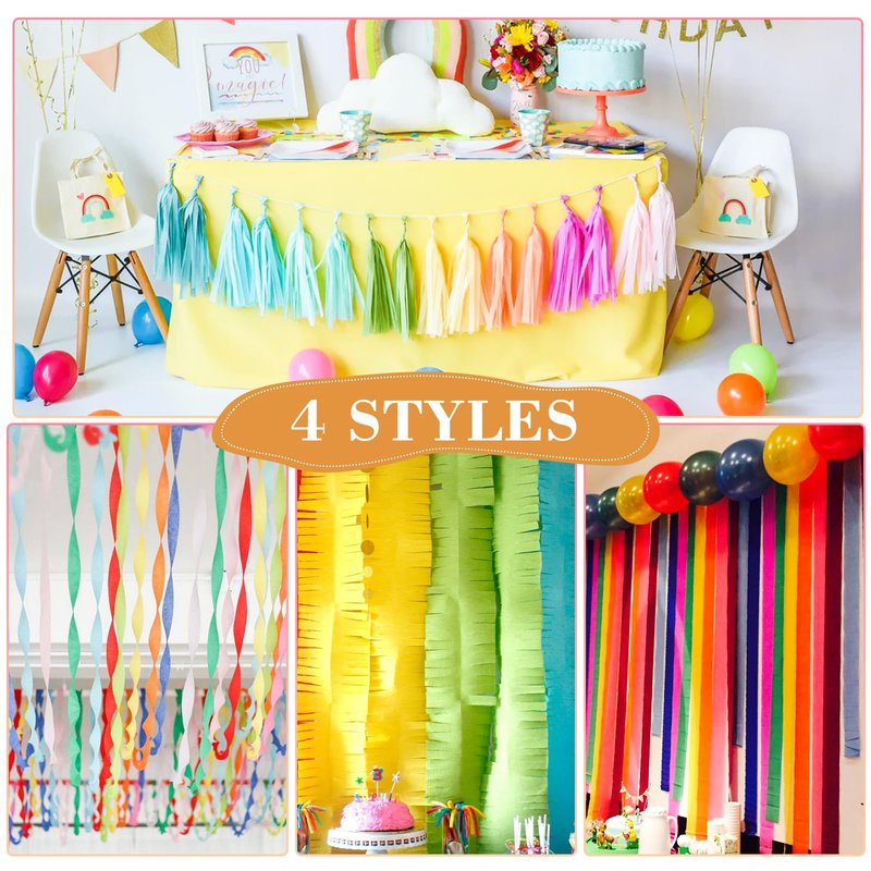 - MULTIPLE USAGES: Our crepe paper is a popular addition to a variety of parties and celebrations for birthday, wedding decorations,theme party, engagement, baby shower, anniversary, graduation, Halloween parties Christmas decoration, summer parties celebration. crepe paper be used for cute room decorations and art DIY Projects. give it to school children enjoy independently created art projects,You can hang them on walls, ceilings, doorways, trees, and around the room to create a festive.